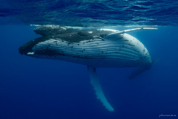 Taken in the warm waters of Moorea, French Polynesia (2019), a mother humpback whale and her calf showcase their beauty and size at the top of the water – only metres away. Taken in the wild, these natural encounters are enchanting and wonderful to experience. To be able to capture it is truly humbling.